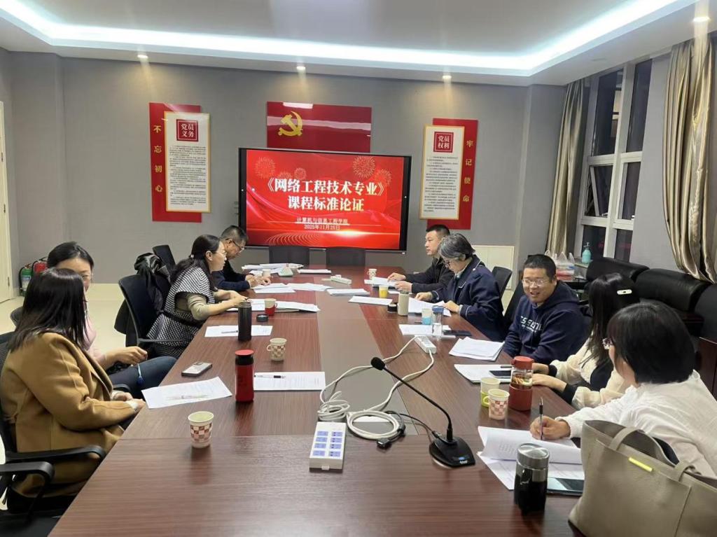 为提升课程质量、优化教学体系,计算机与信息工程学院于11月25日组织召开网络工程技术专业5门专业课程的课程标准审核论证会。会议由学院副主任吴和群主持,课程标准撰写负责人参加,并邀请两位本科院校教授担任校外评审和三位计算机专业高级职称人员作为校内评审共同出席。
