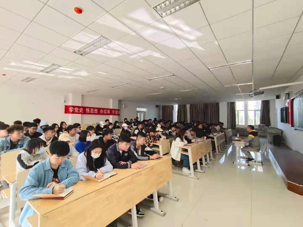 学生科副科长高亮带领同学们学习了遵义会议和红军长征两次重要事件,在历史中深入体会党的奋斗历程,接续前辈们的红色基因,引导广大青年学生全面理解党的民族政策,树立正确的国家观、历史观、民族观、文化观、宗教观。团总支书记王利华讲述了全民族抗日战争的中流砥柱章节,让同学们了解抗日战争胜利的来之不易。铸牢中华民族共同体意识不只是靠说,更是要做,落到实际行动中。提高思想认识,切实增强开展好主题教育的自觉性,做好统筹安排,切实保证主题教育活动的实效性,激发了同学们自强不息的拼搏斗志。