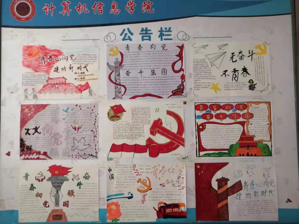 为了让同学们了解党史,积极向党组织靠拢,引导同学们树立正确的世界观、人生观、价值观,促进校园精神文明建设,推动党建、文化深度融合,计算机系于2021年5月13日举办“青春向党 奋斗强国”主题宣传活动,20级全体同学参加本次活动。