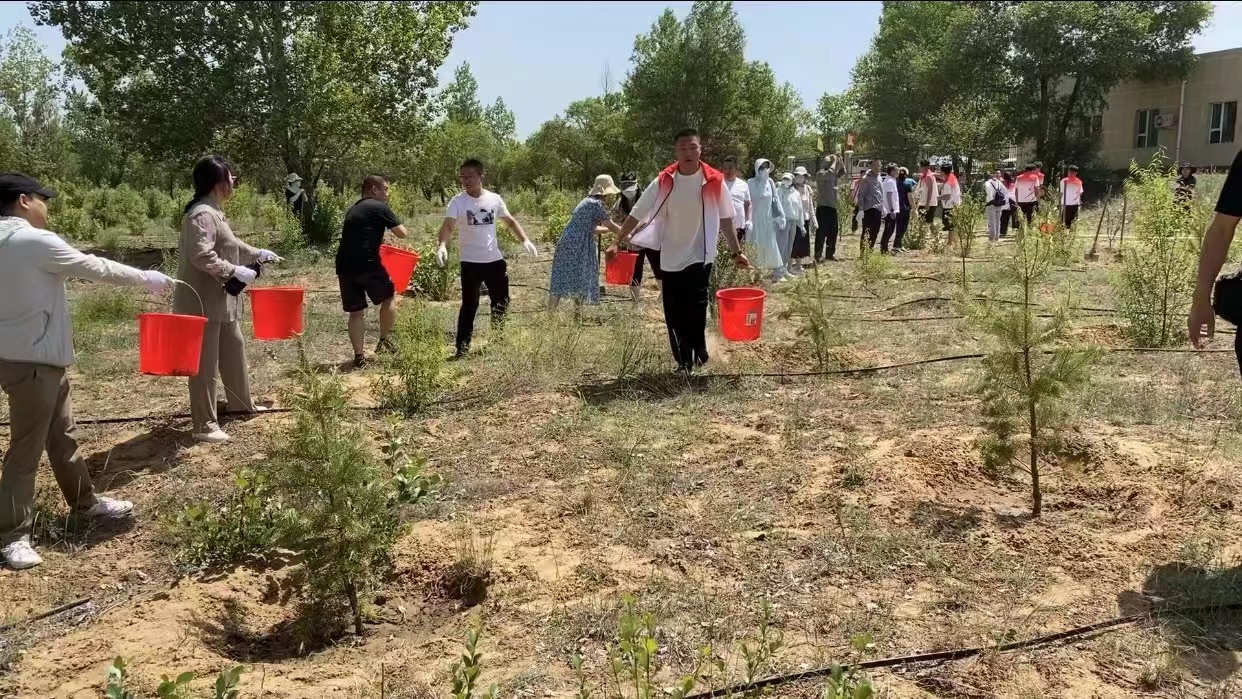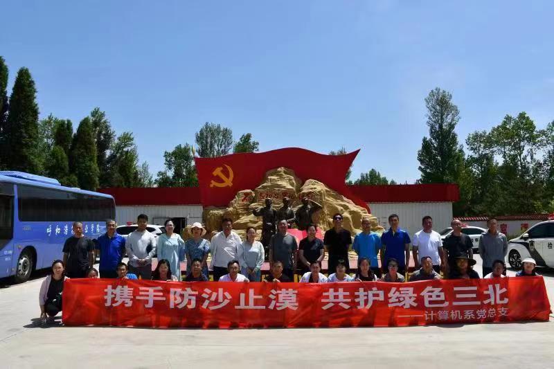 为庆祝中国共产党成立102周年,落实党的二十大精神,7月6日上午,计算机系组织党员、教师、团学干部代表前往和林格尔白二爷沙坝治沙精神主题教育基地开展主题党日活动。在系党总支书记舒杰同志的带领下,师生跟随护林员来到白二爷沙坝第6区为松树培土、浇水;随后,大家前往治沙精神主题教育馆,聆听讲解员介绍:白二爷沙坝地处和林格尔、清水河、平鲁三县交汇区域。1980年前是和林格尔县境内风沙灾害最严重的地区之一,从1982年起,40年躬耕不息、40年接力坚守,一代又一代白二爷沙坝人用青春和芳华,将昔日黄沙漫漫的12万亩“魔鬼大三角”改造成如今的绿色林海。