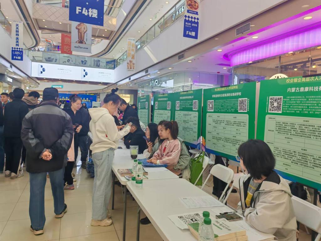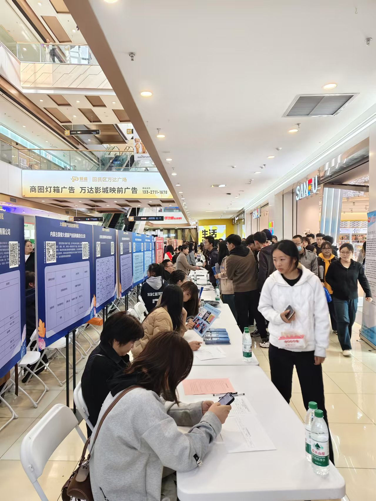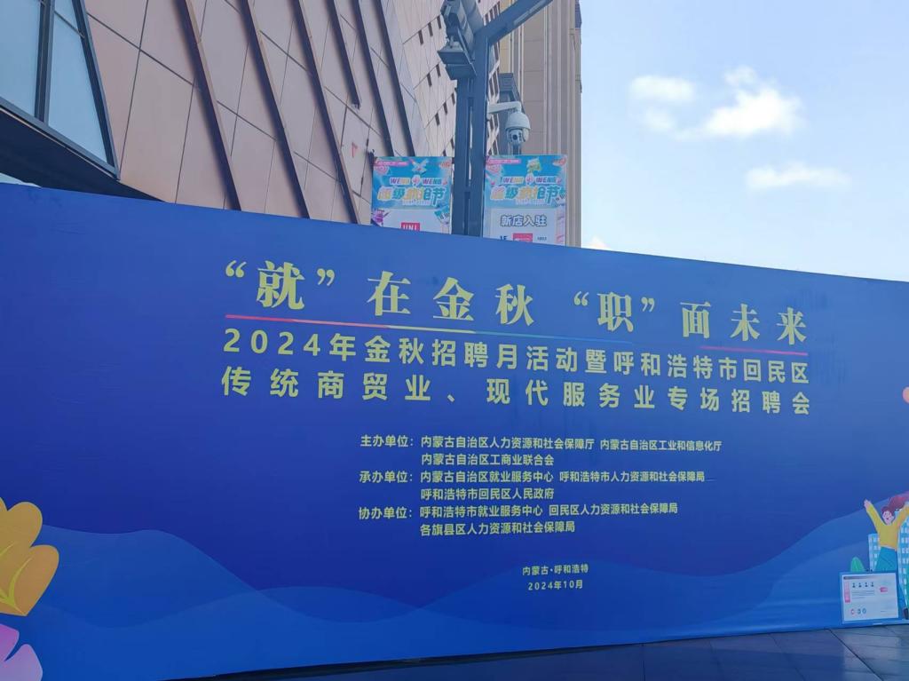 为深入贯彻党的二十届三中全会精神,贯彻落实党中央、国务院促进高质量充分就业决策部署,帮助劳动者求职和企业招聘,促进人力资源供需匹配,2024年10月26日上午内蒙古自治区人社厅主办“就”在金秋,“职”面未来—2024年金秋招聘月活动暨呼和浩特市回民区传统商贸业、现代服务业专场招聘会在西万达召开。我系积极响应招就处号召组织50余名2025届毕业生参会。