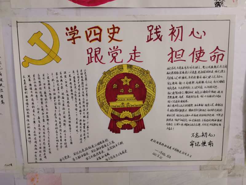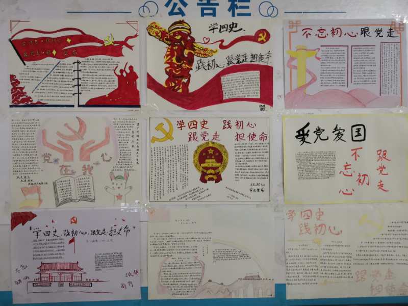 为弘扬社会主义核心价值观,铸牢中华民族共同体意识,激励广大青年进一步坚定理想信念、积极开拓创新,计算机信息学院于2020年10月3日开展“学四史、践初心、跟党走、担使命”海报宣传教育活动,各班同学积极参加,制作出一份份精美的海报张贴在四号教学楼二楼宣传展示栏。