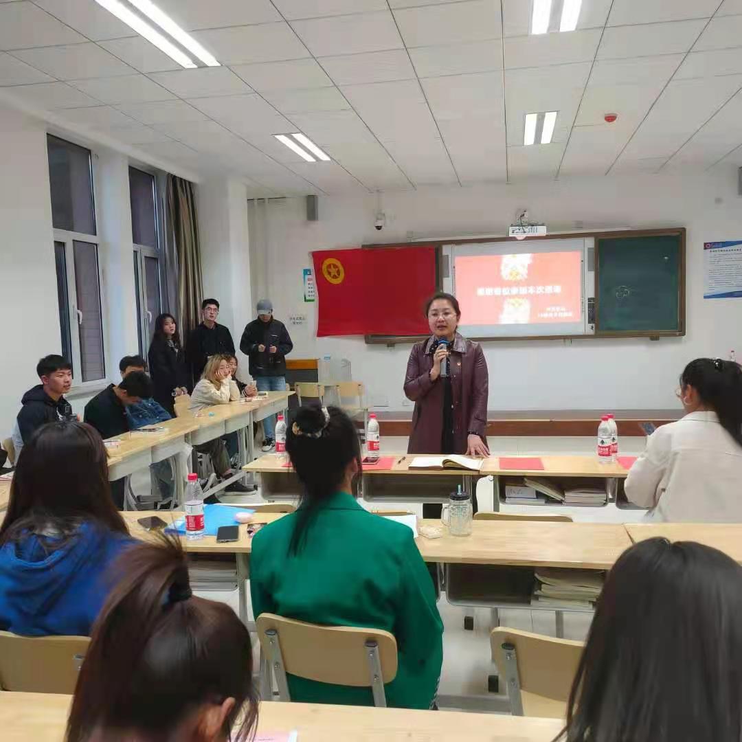 为庆祝中国共产党成立100周年,践行习近平总书记关于“抓好青少年学习教育,让红色基因、革命薪火代代传承”的指示精神,计算机系团总支于2021年4月26日18:00在敏学楼303教室开展“驻校蹲班”—“纪念中国共产党诞辰100周年”主题团日活动。呼和浩特职业学院团委书记张靖、计算机系团总支书记王利华及2019级电子商务班全体同学参加了本次活动。