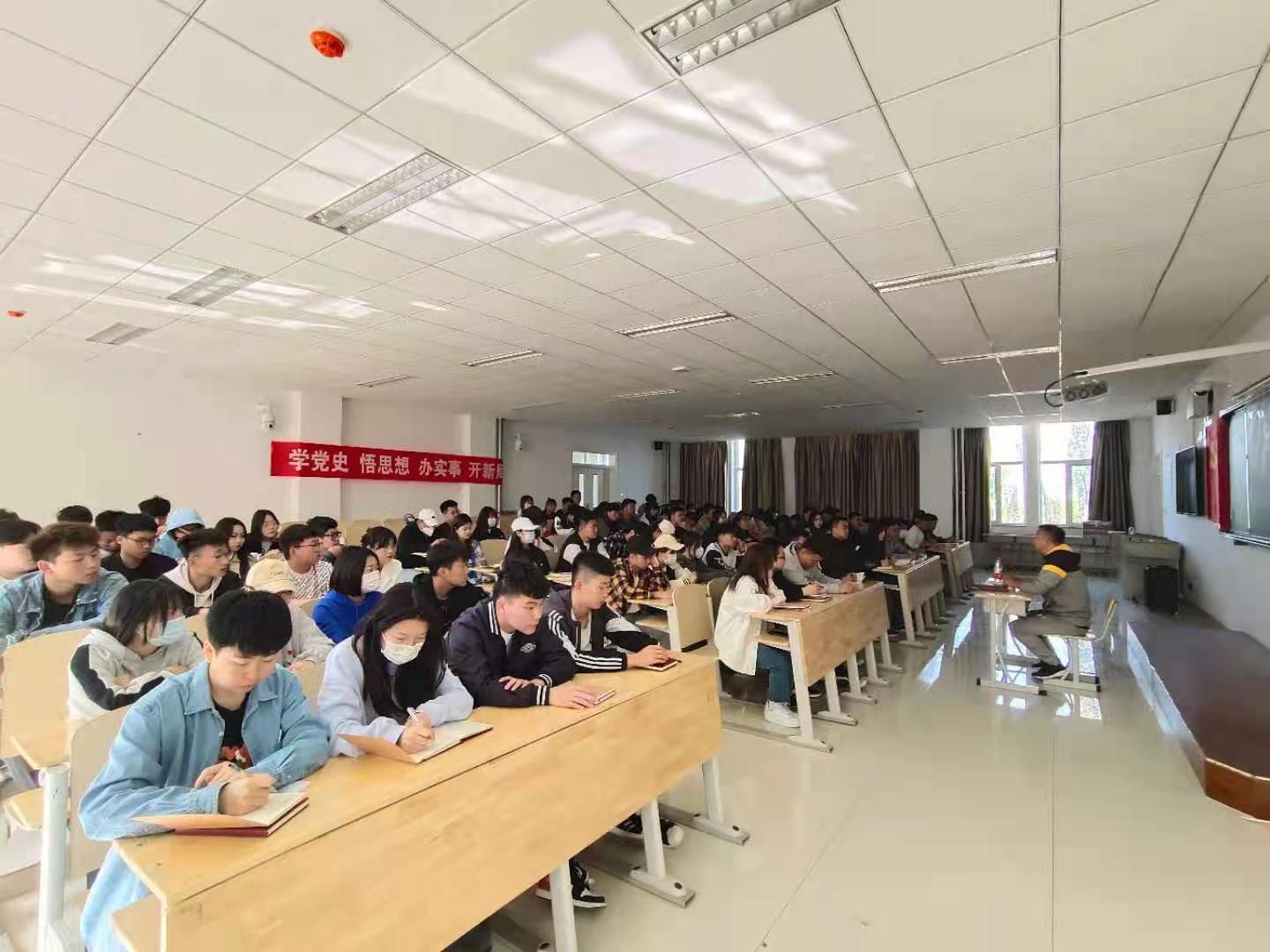 学生科副科长高亮带领同学们学习了遵义会议和红军长征两次重要事件,在历史中深入体会党的奋斗历程,接续前辈们的红色基因,引导广大青年学生全面理解党的民族政策,树立正确的国家观、历史观、民族观、文化观、宗教观。团总支书记王利华讲述了全民族抗日战争的中流砥柱章节,让同学们了解抗日战争胜利的来之不易。铸牢中华民族共同体意识不只是靠说,更是要做,落到实际行动中。提高思想认识,切实增强开展好主题教育活动的自觉性,做好统筹安排,切实保证主题教育活动的实效性,激发了同学们自强不息的拼搏斗志。