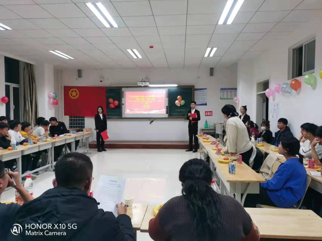 为加深同学们的爱党情怀,不忘初心、牢记使命、对党忠诚,计算机系团总支于2021年11月18日晚在四号教学楼203教室开展“驻校蹲班”暨“十九届六中全会精神学习”主题团日活动。呼和浩特职业学院团委组织宣传部主任贾宏宙老师、团委李国栋老师、计算机系副主任王瑾瑜老师、计算机系团总支书记张书恒老师及20级大数据技术与应用2班全体同学参加本次活动。