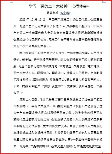 11月5日,计算机系教师党支部组织全体教师党员以在线的形式学习党的二十大精神。支部书记吴和群组织了本次学习,要求全体教师党员从深刻认识党的二十大胜利召开的重大意义,深刻把握党的二十大主题,深刻把握过去5年的工作、新时代10年的伟大变革和“两个确立”的决定性意义等方面原汁原味地学,学深悟透,自觉用党的二十大精神武装头脑、指导教育教学实践。