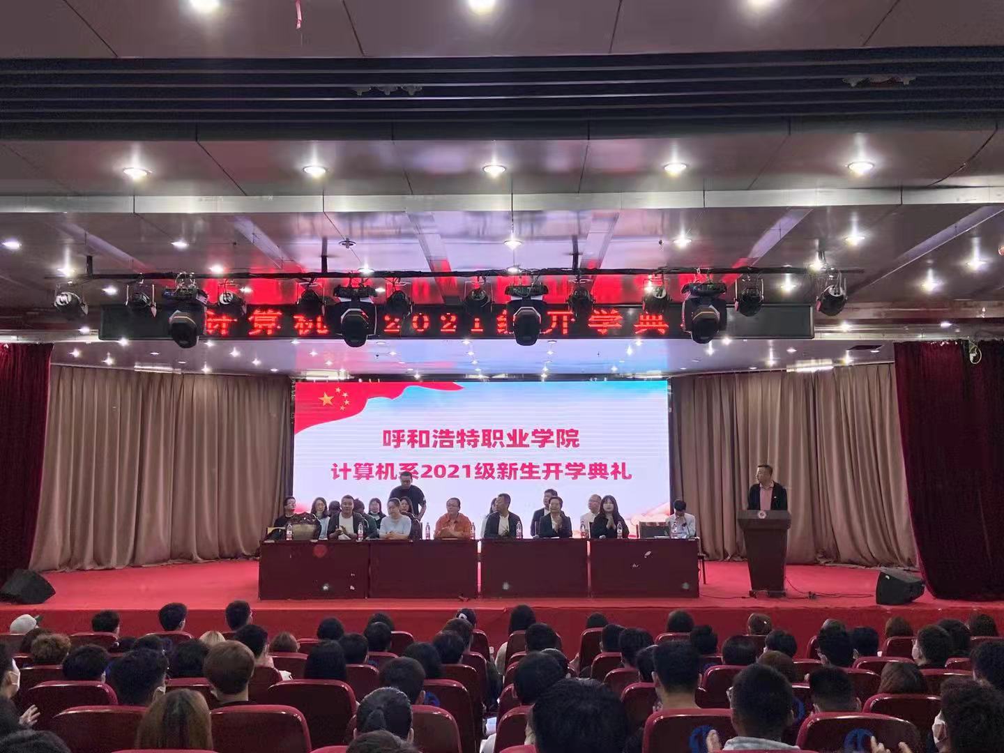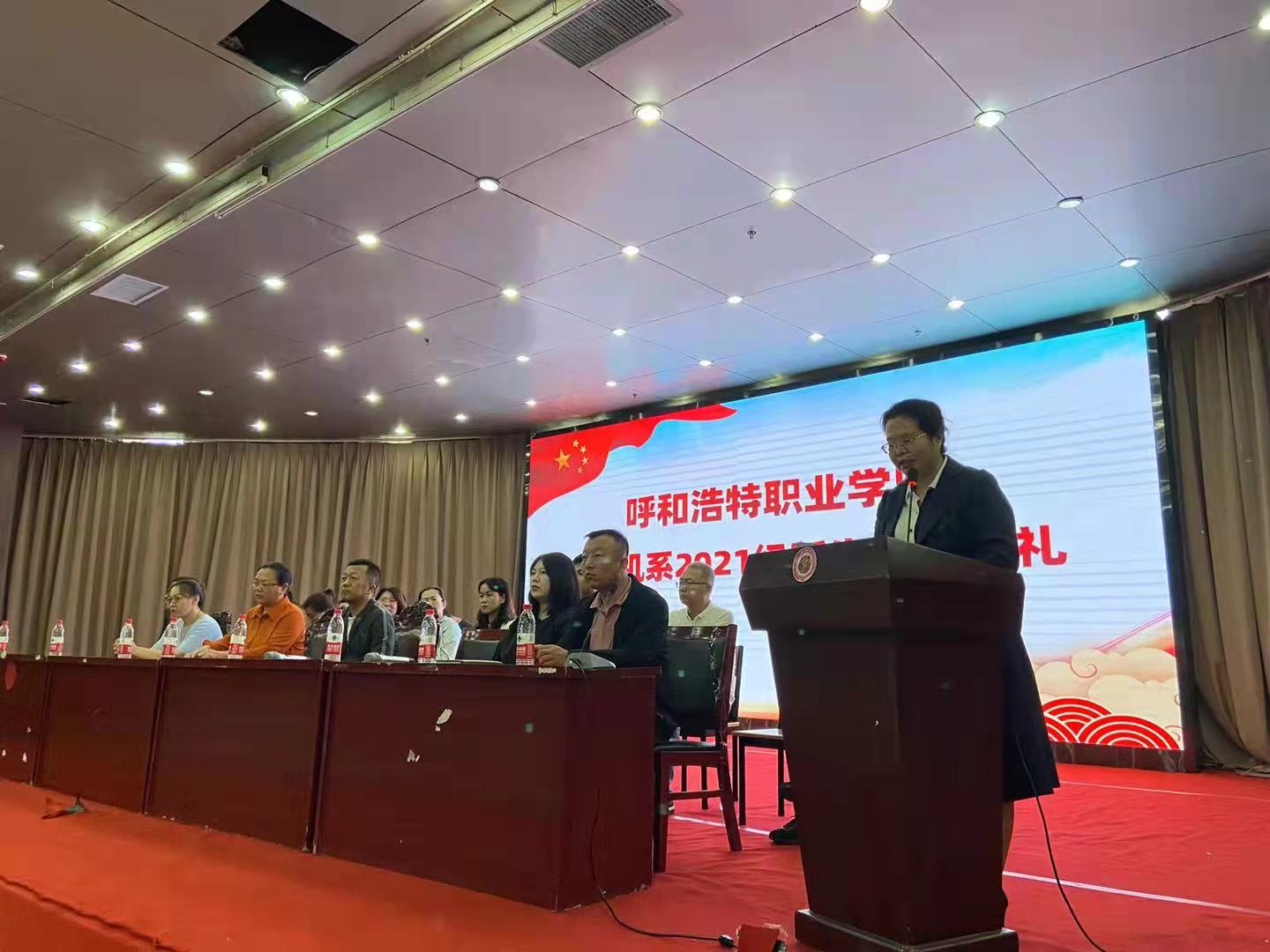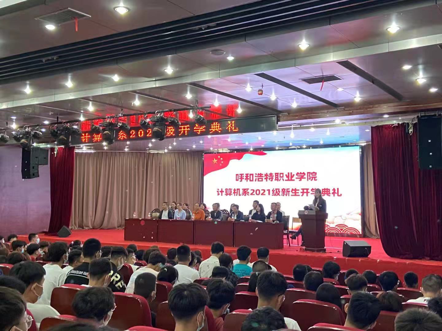 朗朗金秋,丹桂飘香。9月4日下午,呼和浩特职业学院计算机系2021级新生开学典礼在图书馆1楼报告厅隆重举行。系党总支书记舒杰、主任杨丽、副主任王瑾瑜、副主任吴和群,以及计算机系各科室负责人、教研室主任、专业带头人和2021级班主任出席典礼。我系2021级全体新生参加了开学典礼。典礼由高亮科长主持。
