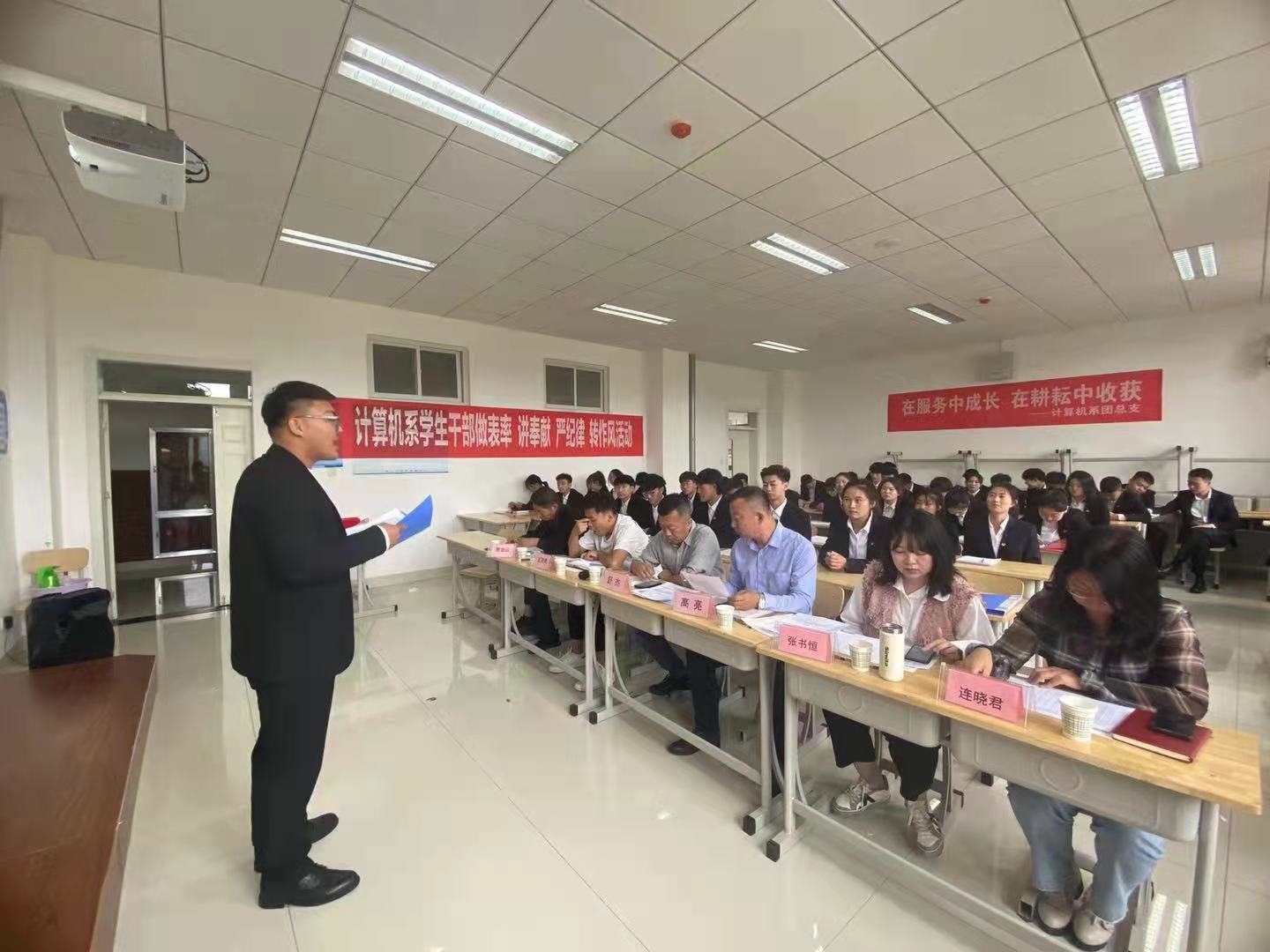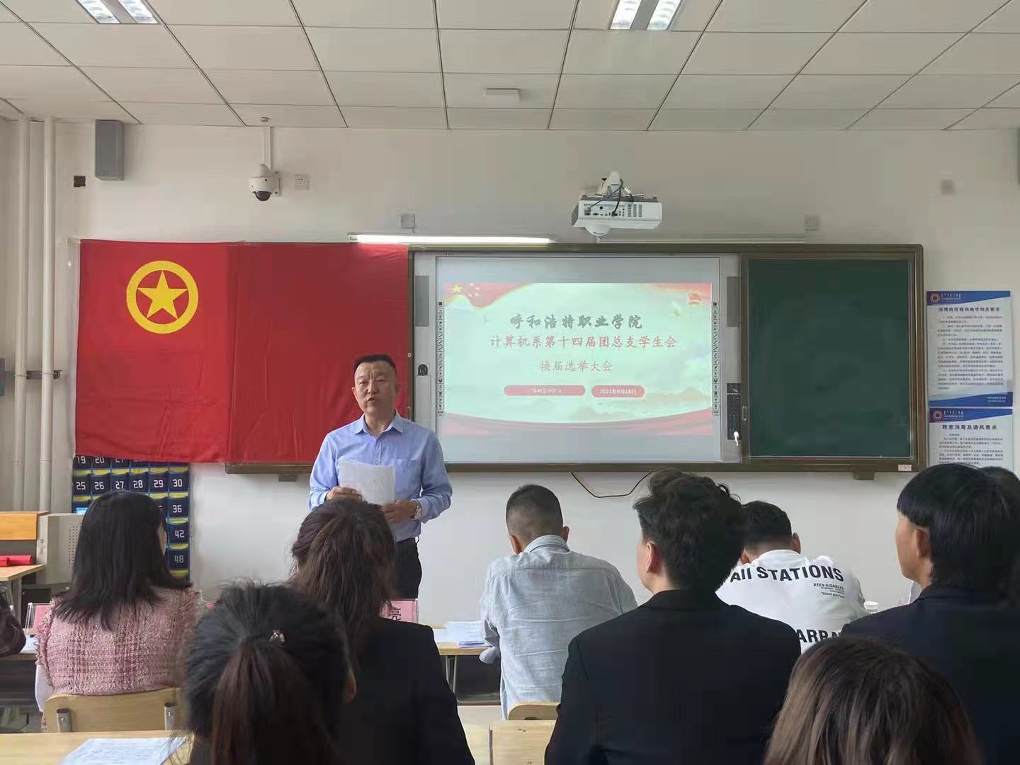 为进一步加强团学工作人员队伍建设, 给同学们提供展现自我、服务同学的平台,计算机系于2021年9月18日上午在敏学楼召开“第十四届团总支学生会换届选举大会”,系党总支书记舒杰、副主任王瑾瑜、学团科科长高亮、学团科副科长兼团总支书记张书恒以及全体学团科老师、19级全体学团干部以及20级全体竞聘同学参加本次大会。