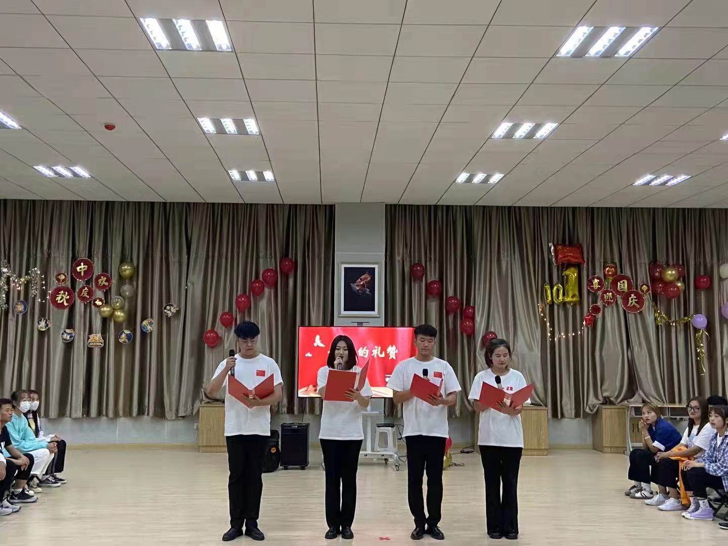 为了庆祝祖国传统节日,让同学们感受到佳节浓浓的欢乐气氛,计算机系团总支于2021年9月21日下午六点半在艺术楼C107室举办“同讲普通话,共赏中秋月;赞百年伟业,迎祖国华诞”中秋联欢活动。计算机系党总支书记舒杰、主任杨丽、副主任王瑾瑜、学团科科长高亮、团总支书记张书恒、学团科全体老师以及全体同学通过现场观看和线上同步直播的形式参与本次联欢活动。