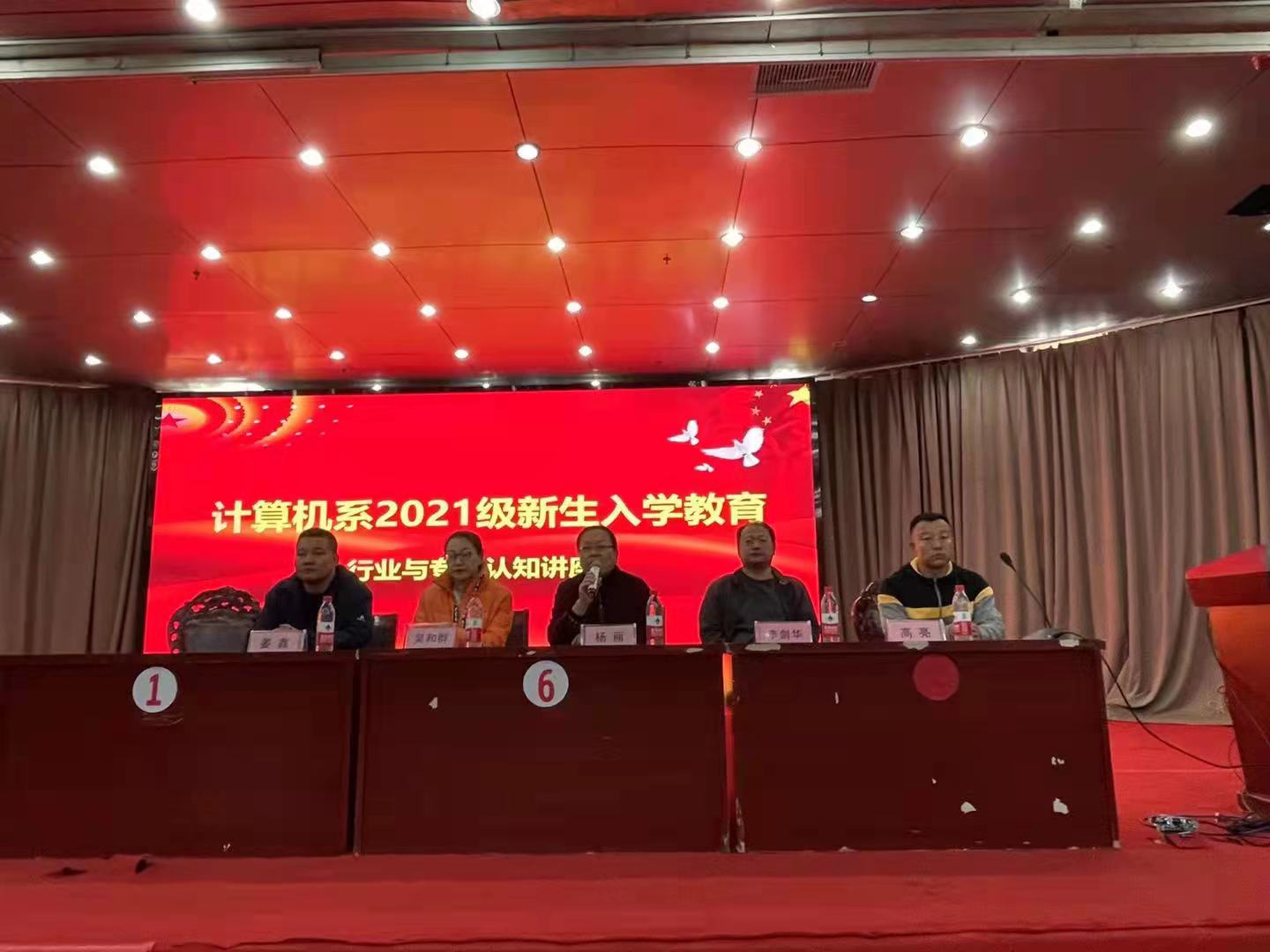 为了使21级新生全面了解所学专业,更加清楚学习目标与学习方向,增强专业学习兴趣,计算机系于2021年10月20日下午举办了“行业与专业认知”——2021级新生入学教育专题讲座。相关企业代表、系班子成员、科室负责人参加本次讲座;20级全体学团干部及21级全体同学全程聆听讲座。