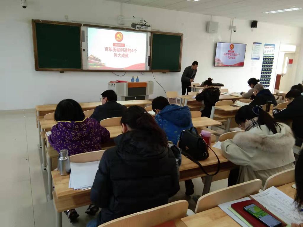 系党总支书记舒杰做主题宣讲,从总结重大成就和历史经验的3个“需要”、马克思主义中国化的3次飞跃、百年历程创造的4个伟大成就、党的百年奋斗的五大历史意义、10大历史经验,党的十八大以来13方面的重要成就、全党4个必须,党中央的一个号召等方面与大家共同学习和重温了决议的相关内容。学习宣传党的十九届六中全会精神,让党的创新理论成果融入高校思想政治工作、贯穿教育教学全过程,引导党员干部师生从党的百年奋斗历程中汲取智慧和力量,为强国复兴贡献自己的力量。所有党员和干部都要认真学习领会全会精神,切实把思想和行动统一到全会精神上来,落实到具体工作中,为学院建设做出应有贡献。