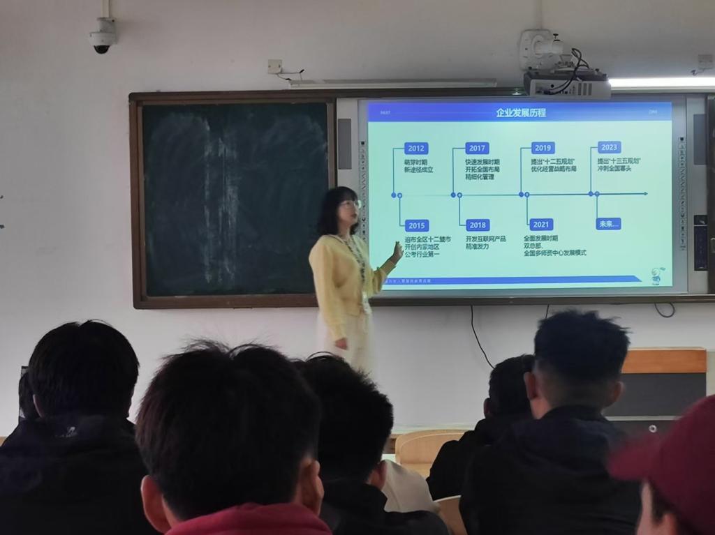 企业负责人从公司发展概况、业务经营范围、岗位需求及数量、薪资待遇等多方面进行了详细介绍;学生们与企业积极交流互动,向企业咨询相关岗位信息,增加了对企业情况的了解和就业信心。