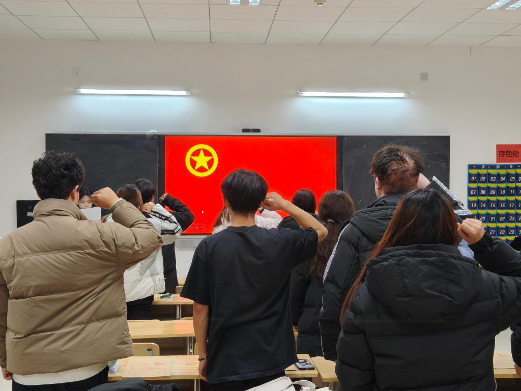 活动严格按照入团规范流程开展,在庄严的国歌中正式启幕。仪式上,团总支书记张书恒依次为新团员颁发团员证,每一本团员证的递出,都承载着团组织的信任与期望,也让新团员们深切感受到作为共青团员的光荣与责任。随后,团员代表高举右拳,带领全体新团员面向鲜艳的团旗庄严宣誓,誓言铿锵有力、掷地有声,回荡在活动现场,充分展现了新团员加入共青团的坚定决心与青春担当。宣誓后,新团员代表上台发言,抒发入团的激动心情,明确未来奋斗目标,表达以实际行动践行团员义务、贡献青春力量的坚定信念。整场仪式流程紧凑、庄重规范,从国歌响起至宣誓完毕,每一个环节都彰显着团组织的严肃性,让每一位新团员接受了深刻的思想洗礼与精神淬炼,在激昂的团歌歌声中圆满落幕。