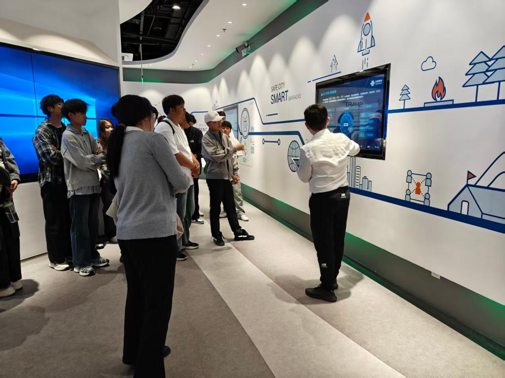 此次活动聚焦企业展厅参观学习,得到分公司的细致安排,专属讲解员全程带队讲解。讲解员首先从“大国央企责任担当”切入,介绍内蒙古联通在服务地方数字经济建设中的核心定位与发展历程随后以“数智基座”为核心,阐释云计算、大数据等技术支撑体系的搭建逻辑重点围绕5G智慧急救云平台、智慧教育、数字乡村、智慧应急四大应用场景展开详细讲解,结合案例演示了5G技术如何实现急救数据实时传输、智慧教育平台如何助力优质资源共享、数字工具如何赋能乡村治理与应急响应,让师生直观看到计算机专业技术在民生服务、乡村振兴等领域的落地形态。整个参观过程以讲解演示为主,同学们认真聆听记录,沉浸式了解数字技术的行业应用全貌。