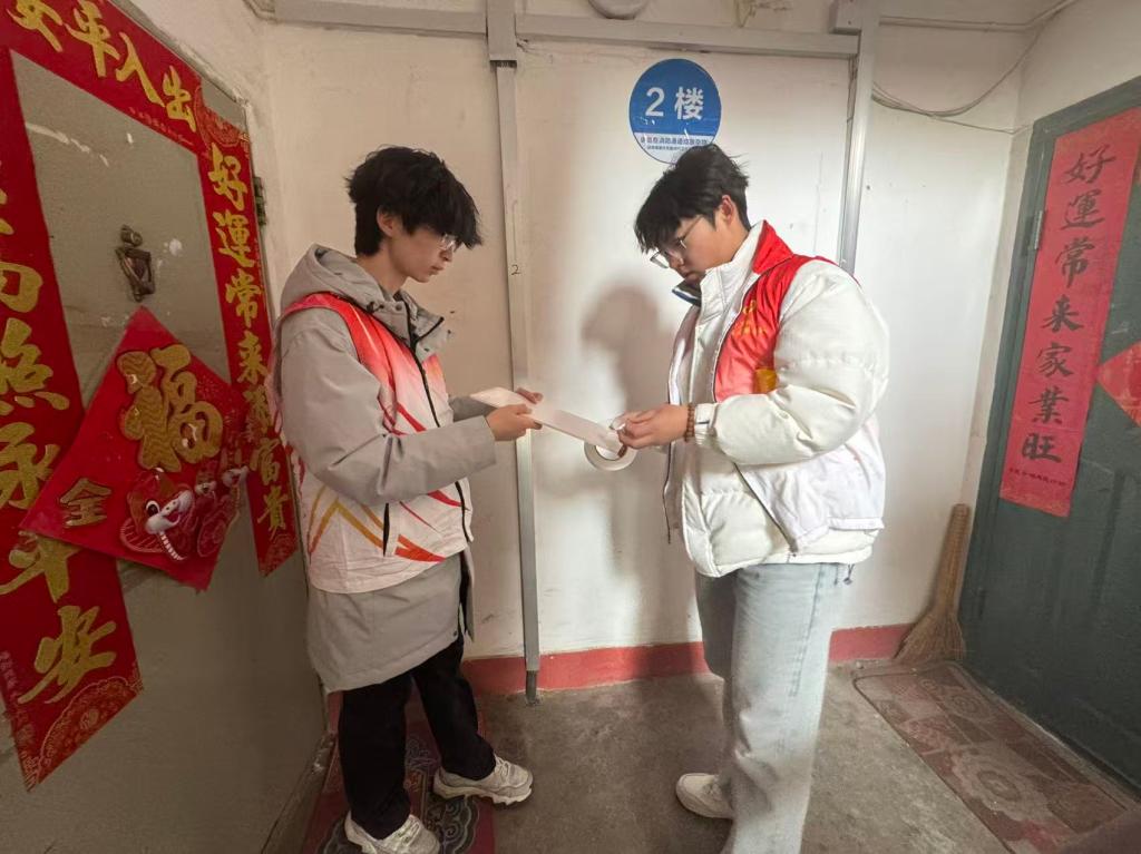 同学们抵达社区后在现场工作人员的分工下分组行动。部分同学化身社区文明宣传员,在社区醒目位置粘贴文明宣传指示牌,反复核对张贴位置,确保标识清晰规范;另有同学前往周边路口担任交通引导员,耐心劝导不文明通行行为,协助维护良好的道路通行秩序。活动全程,同学们分工明确、配合默契,用饱满的热情和务实的行动高效完成各项任务。