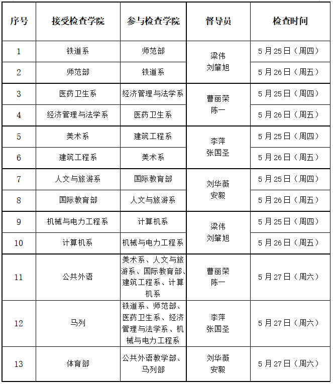 2.教学督导组1名工作人员负责督导两个系(部)的检查工作,接受检查和参与检查的系(部)教务科长相互联系确定检查时间、地点,并通知督导组相关成员。