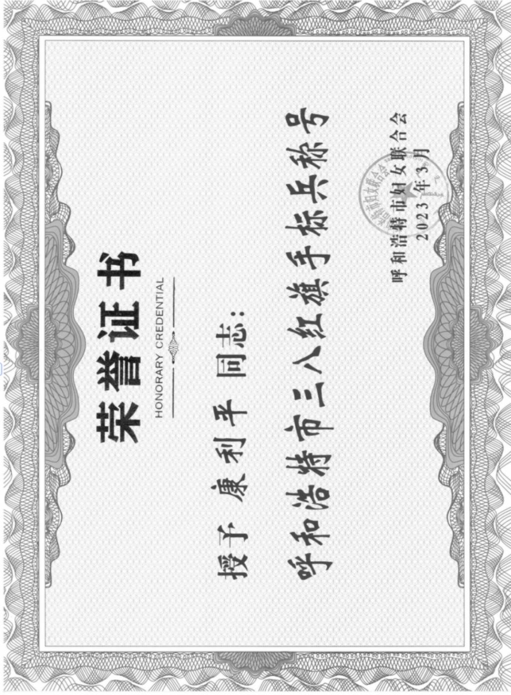 呼和浩特市“三八红旗手标兵“”(2023,康利平)