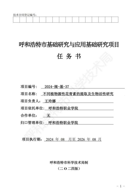 不同植物源花青素的提取及生物活性研究