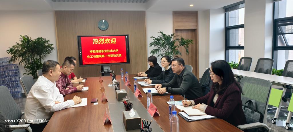 调研期间,教师团队参观了绿促会成员单位的科技成果展示,直观了解绿色产业前沿技术与应用场景。绿促会会长崔志杰详细介绍了协会及绿促会的职能定位,明确表达将为环境监测技术专业发展提供支持、开展深度合作的意愿。王斌主任则围绕呼和浩特职业技术大学及化工与建筑系的办学特色、专业布局展开介绍,重点就环境监测技术专业的发展方向、人才培养需求与绿促会进行精准对接,为后续合作奠定坚实基础。