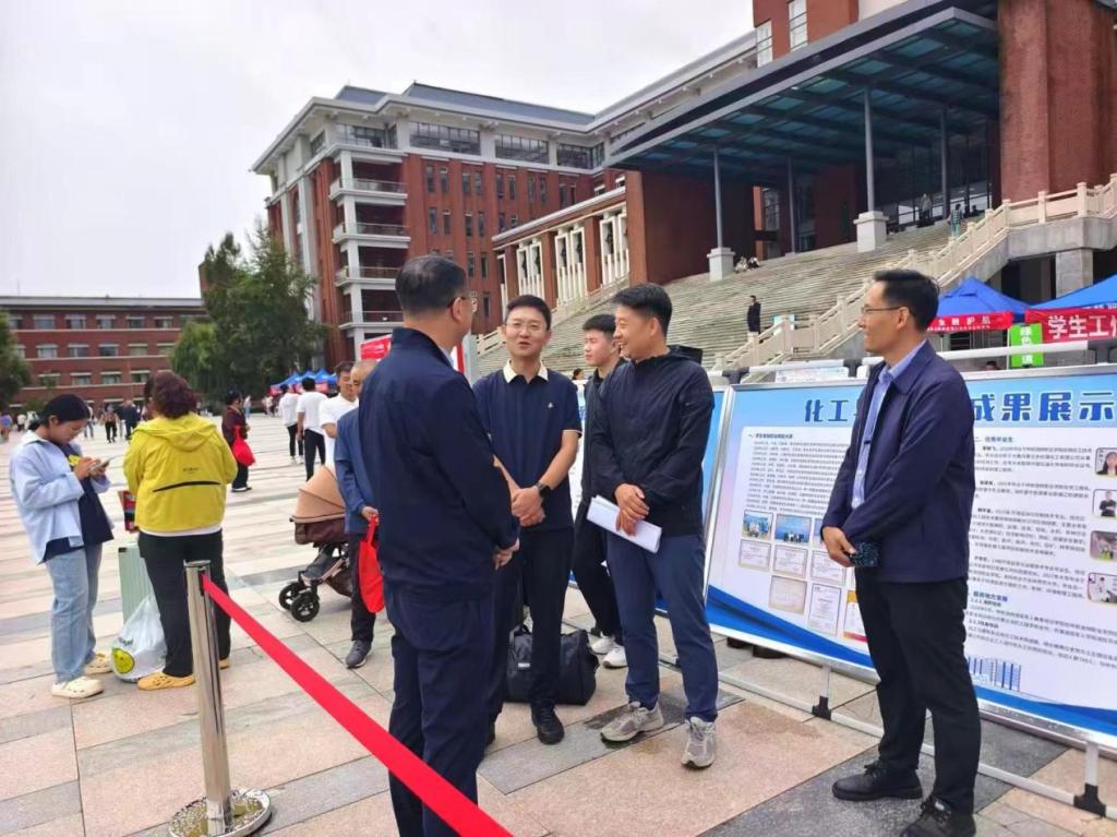 在报到点,化工与建筑系领导班子成员亲临迎新现场,详细了解报到情况,慰问忙碌在一线的师生志愿者,并与新生及家长亲切交流。