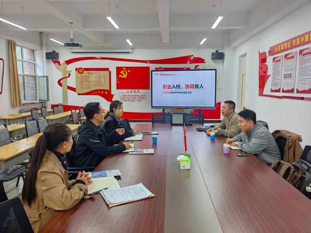 为精准对接工程造价行业数字化发展需求,推动BIM技术与职业教育深度融合,近日,上海红瓦科技区域总监王果带队到化工与建筑系开展高校BIM专业建设方案研讨,就联合开发专业教材、共建精品课程、提供技能大赛技术支持、校企合作等事宜开展专项洽谈。化工与建筑系副主任李世文、副主任李文艳及工程造价教研室主任参加了本次合作交流会。