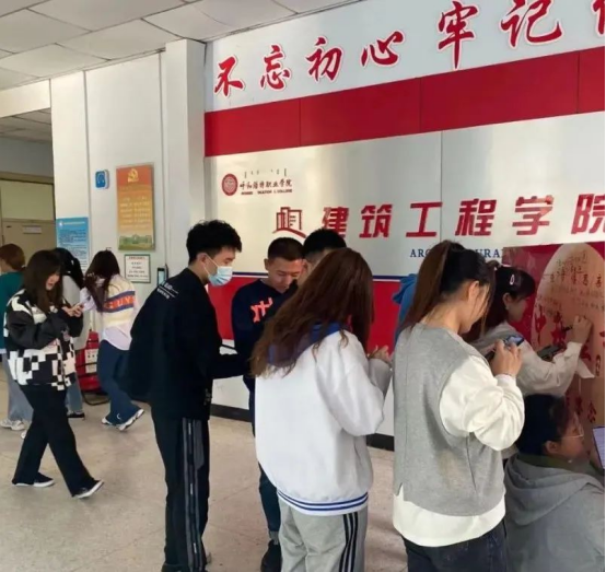 “每逢佳节倍思亲,今年中秋特不同”。由于疫情的影响,今年的中秋节全体师生正常上课。为了使这样的中秋更有纪念意义,建筑工程系团总支开展了“中秋寄思语”签名活动。