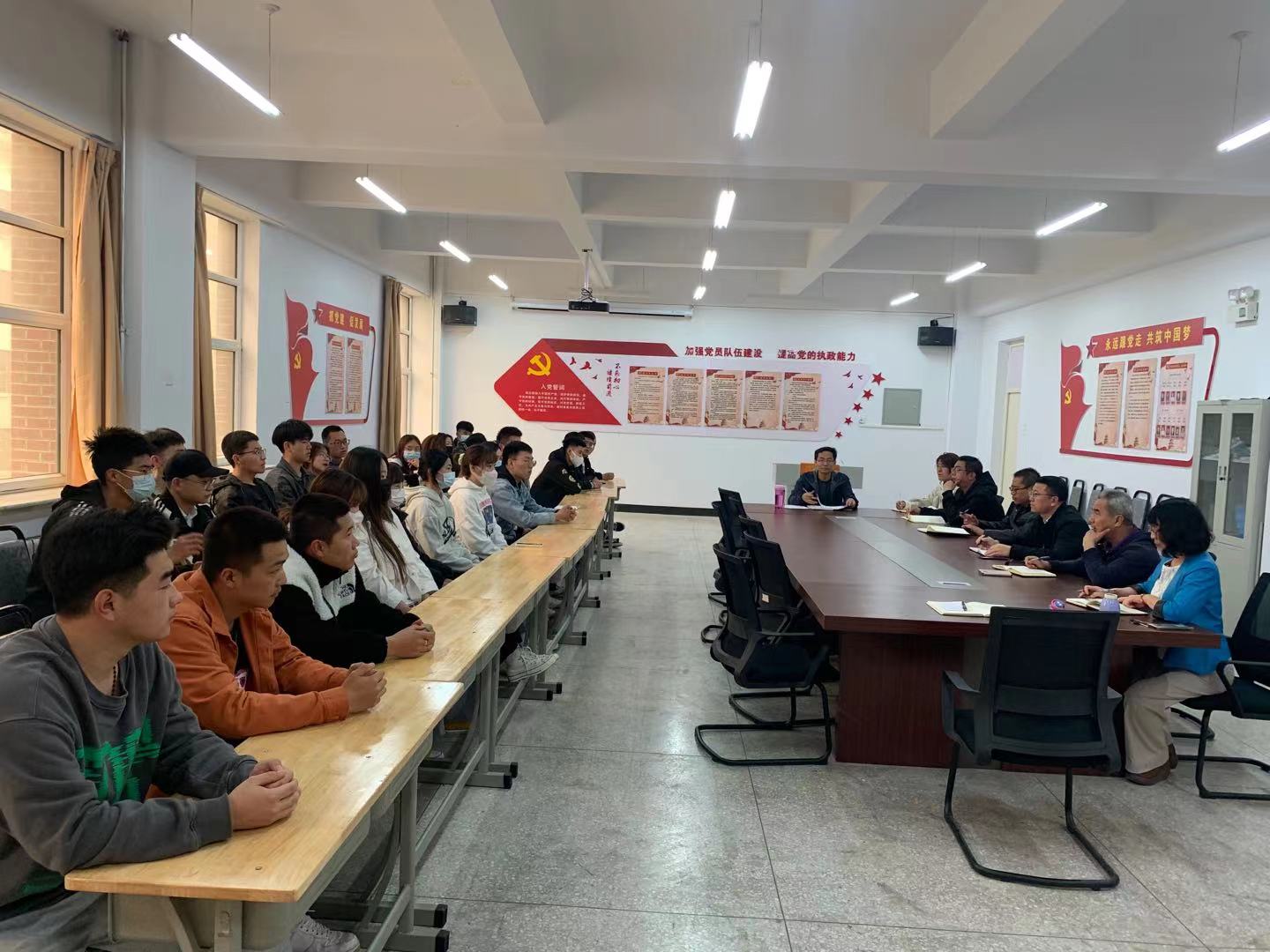为贯彻落实学院党委关于党史学习教育工作部署要求,及时掌握学生“急难愁盼”问题,建筑工程系于5月6日下午在致知楼312会议室召开了学生座谈会。教务处副处长张国圣、教学运行科科长安毅、科员梁玉倩、建筑工程系党总支书记赵建军、主任王斌、副主任李世文、教务科科长闫瑞兰、学生科科长祁子良参加了本次座谈会,会议由闫瑞兰主持。