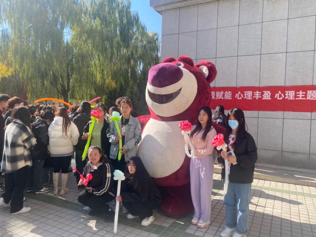 在此次活动中,我们紧密围绕主题,开展了大心理健康教育题目,“送你一朵小红花”和“送你一个熊抱”心理健康主题活动。每位参与答题的同学都可以得到小丑现场编制的“气球小红花”或是网红草莓熊的“温暖拥抱”。活动受到了同学们喜爱,纷纷上前互动、合影,氛围欢快融洽。为同学们普及心理健康方面的相关知识的同时,引导同学们保持积极乐观的人生态度。最终本次活动在无数欢声笑语中完美落幕。