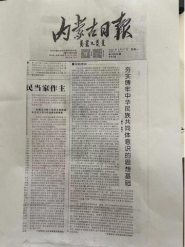 马研部教师姜淑兰论文《夯实铸牢中华民族共同体意识的思想基础》发表在内蒙古日报2023/3/27 第26928期(8版),第3版