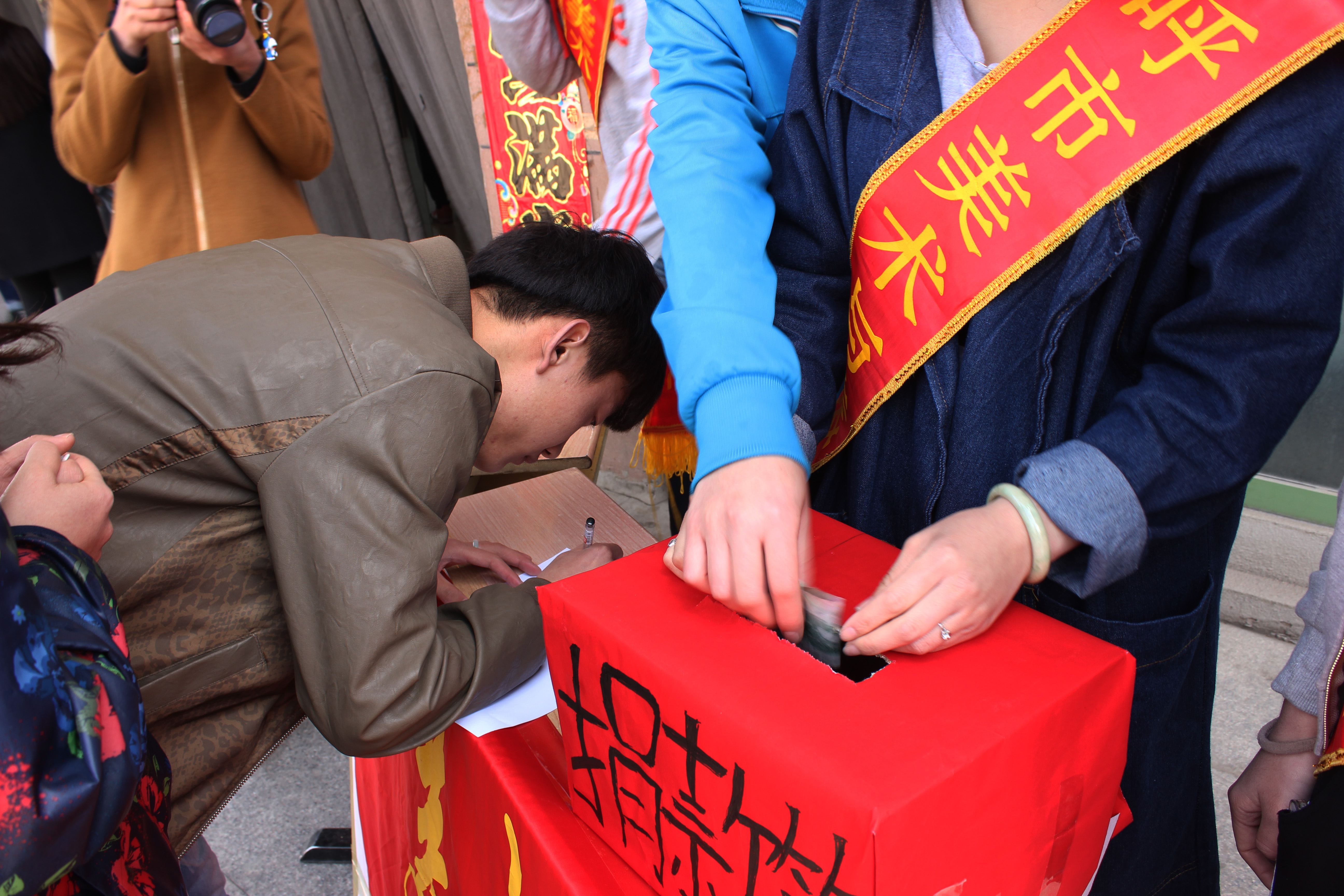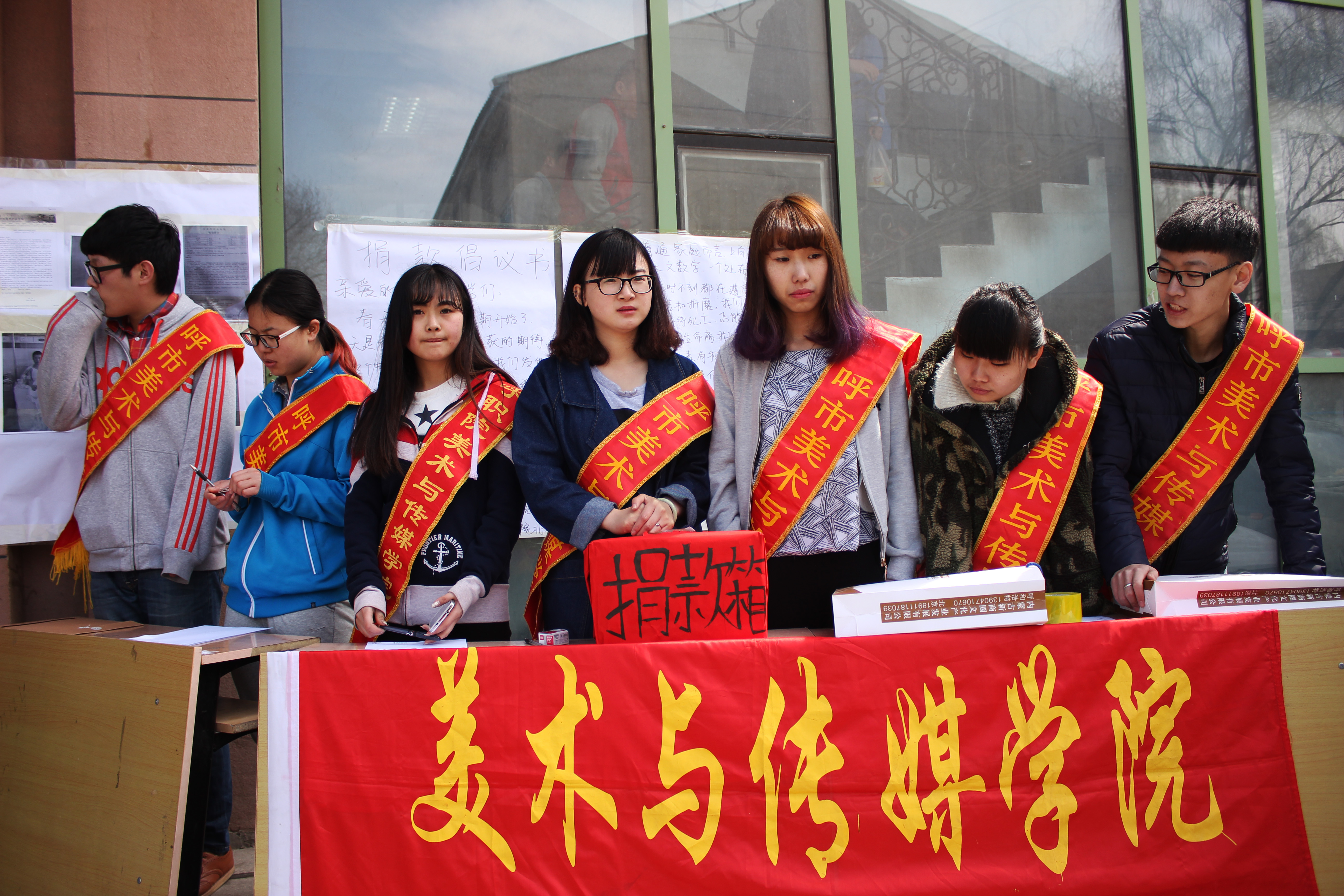 2015年4月8日,美术与传媒学院在西校区溢才食府门前组织爱心募捐活动。在学生会干部的带领下,同学们排起长队,踊跃捐赠,纷纷献出了自己的爱心。