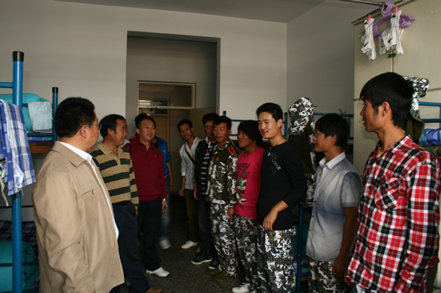 9月12日中午12点,美术与传媒学院王克勇书记、赵福院长、娜日苏副院长、学生科科长李志国、副科长杨阳以及各班班主任前往学生公寓看望我院2011级的新生。