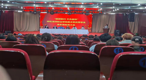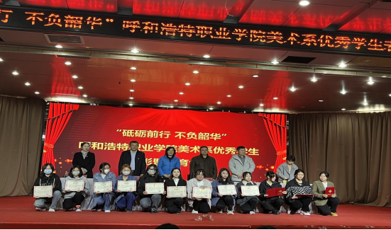 会议第三项凯军副主任宣读了“中共呼和浩特职业学院美术系支部委员会关于对优秀学生的表彰决定”,在过去一年里,美术系学生工作在学院党委和上级学团组织的指导下,深入贯彻学习党的二十大精神,围绕学院的各项中心工作,在开展学生素质教育、社会实践、志愿服务、科技创新和校园文化建设等工作中取得了突出的成绩。