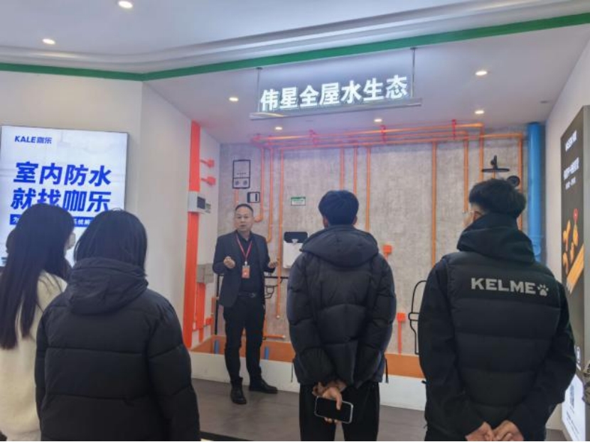 内蒙古龙发装饰作为区域装饰设计行业标杆企业,为本次认知实习量身打造了沉浸式体验流程。学生们在企业导师的带领下,先后参观了设计创意中心、材料展示厅与项目模拟工坊:在设计部,近距离观摩资深设计师运用CAD、3DMAX等软件进行方案深化,了解从客户需求调研到效果图输出的全流程;在材料展厅,通过实物触摸、参数解读,认知20余种主流装饰材料的性能差异与适用场景,破解课堂上"只知其名、未见其形"的学习痛点;在模拟工坊,实地查看乳胶漆平涂、瓷砖薄贴法等核心施工工艺的实操细节,直观理解设计方案的落地逻辑。