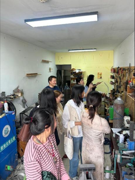 在工作室负责人的热情接待下,教师团队深入参观了工作室的各个区域,详细了解了其在文创产品设计、创作流程以及市场运营等方面的情况。工作室独特的设计理念和丰富的创作成果给教师们留下了深刻印象。