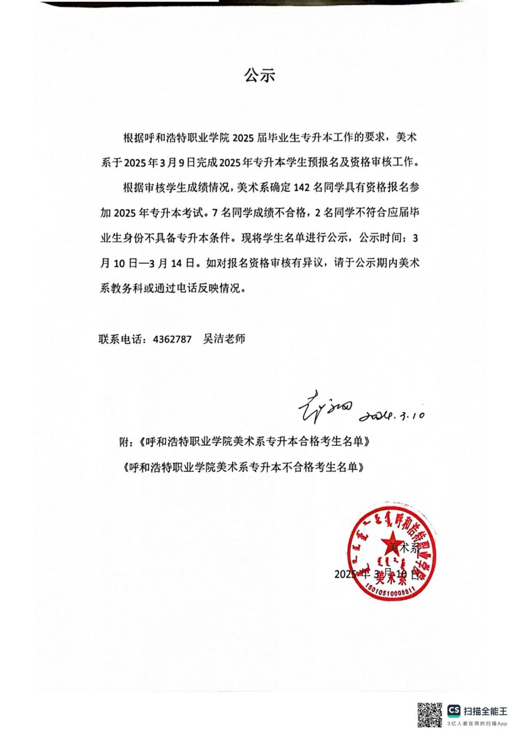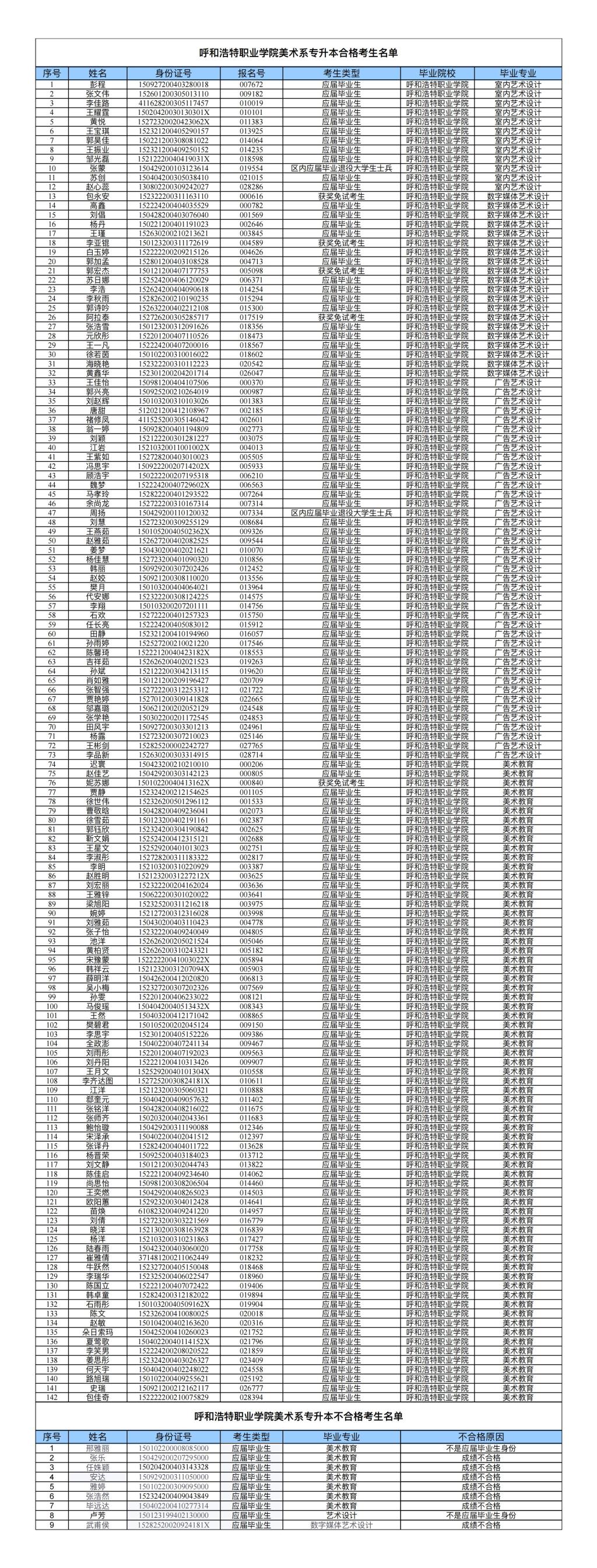 美术系专升本公示