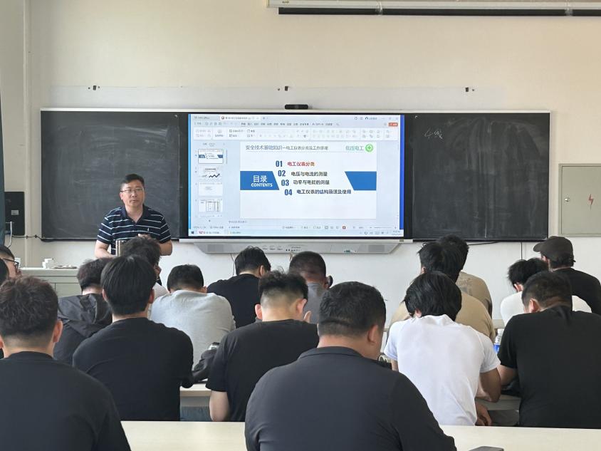 培训课程由机械与电力工程系和培训部共同组织实施,构建了"理论+实操"双轨并行的教学体系。课程内容涵盖职业道德规范、电工基础理论、精密仪器操作及电路故障诊断等模块,通过系统化教学夯实学生专业技能基础,助力学员全面提升电工岗位核心能力。