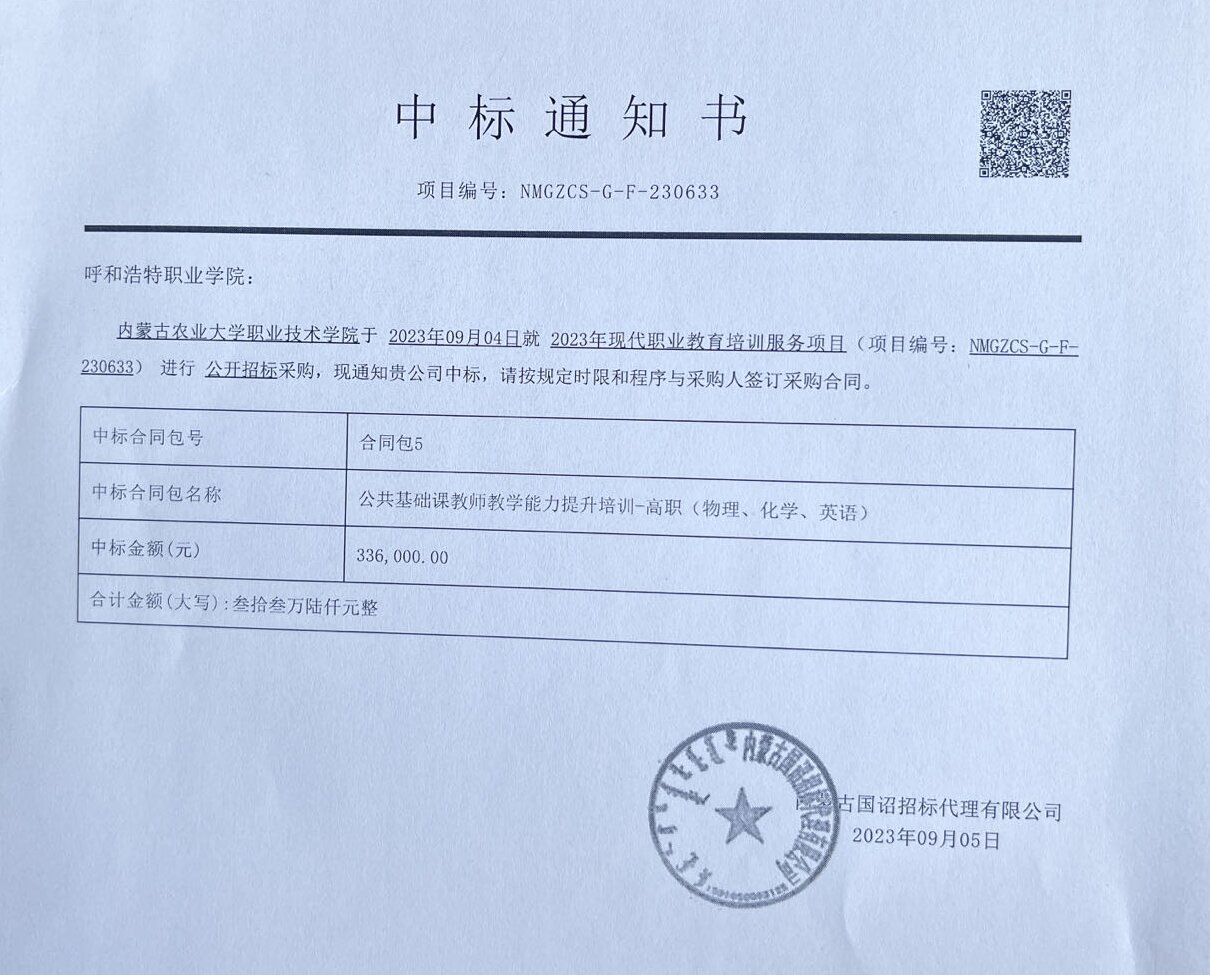 9月5日,我院再中“职教国培”培训项目一项。2023年我院中“职教国培”项目两项,“国培”项目两项,同一年四次中标国培项目,培训工作创造新高度。
