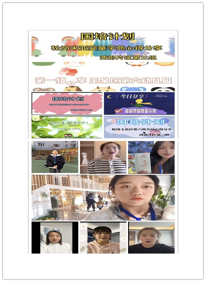 培训第二周——轮岗实践教学,参培学员深入玉泉区第六幼儿园、回民区第五幼儿园、阳光巴学园艾荷国际、米亚托育园四所幼儿园学习观摩,感受不同风格幼儿园的特色。