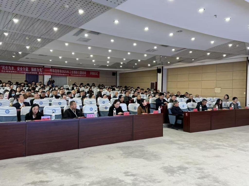 2025年10月28日上午,我校承办的呼和浩特市2025年工伤预防宣传培训项目启动会暨“工伤预防”主题培训开班仪式,在明德楼1号会议室隆重举行。本次活动集聚多方力量,呼和浩特市人力资源和社会保障局党组成员、副局长马玉洁,市社会保险服务中心主任刘慧英及相关科室负责人,市工伤预防联席会议成员单位代表,我校党委委员、副校长嘎日迪及铁道学院80余名师生,与呼和浩特市公交公司的63名职工共同参会。