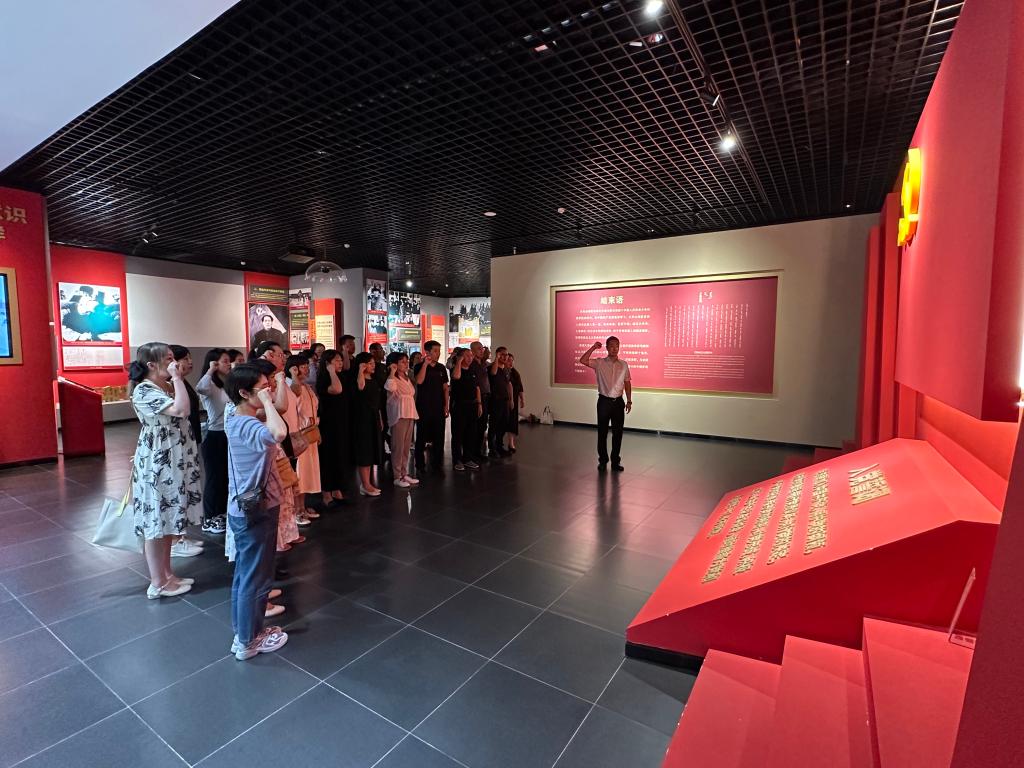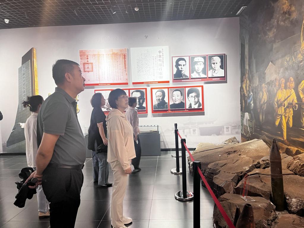 随后,全体党员干部来到大青山红色文化公园展厅进行参观学习。通过一幅幅牺牲英烈的照片、一件件珍贵的遗物、一份份详实的介绍和一位位英雄前辈的事迹,让党员干部们详细了解了大青山地区的革命历史,追忆了革命先烈舍生忘死、共赴国难的艰苦奋斗历程,切身感受到革命前辈始终不渝的理想信念和为中华民族解放奋斗一生的革命精神,并被革命烈士不屈不挠的斗争精神,对党的忠诚热爱之情深深感动。参观最后,全体党员干部面对鲜红的党旗,高举右手,重温入党誓词,以铮铮誓言表达向革命先烈学习的决心。