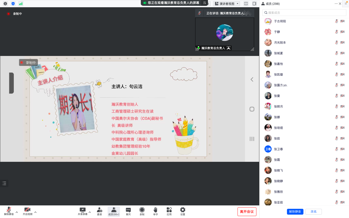 为帮助毕业生树立正确就业观,扎实推进2023届学前教育专业毕业生实习就业工作,2022年11月20日晚,师范部邀请了瀚沃教育负责人句云洁利用线上会议,为学前教育专业做职业规划就业专题讲座,师范部领导班子,各毕业班班主任以及学前教育专业2023届全体毕业生参加本次讲座。本次会议由师范部副主任银杰主持。