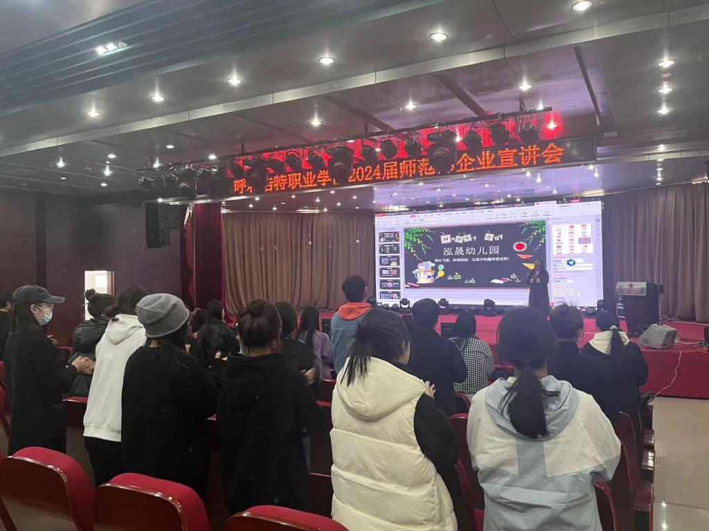参加本次宣讲会的企业有:内蒙古米亚托育有限公司、内蒙古豆芽儿教育信息咨询有限公司、呼和浩特市新途径培训服务有限公司、瀚沃教育信息咨询有限公司、贝尔安亲有限公司、内蒙古启智教育科技有限公司、包头稀土高新区小松树幼儿园、呼和浩特市赛罕区爱瑞德幼儿园、玉泉区第三幼儿园童心逸品分园、呼和浩特市玉泉区伊顿阳光幼儿园、呼和浩特市新城区泓晟幼儿园、呼和浩特市金贝贝幼儿园、内蒙古山姆大叔教育集团,共13家企业。师范部21级学前教育专业的学生也参加了此次企业宣讲会。