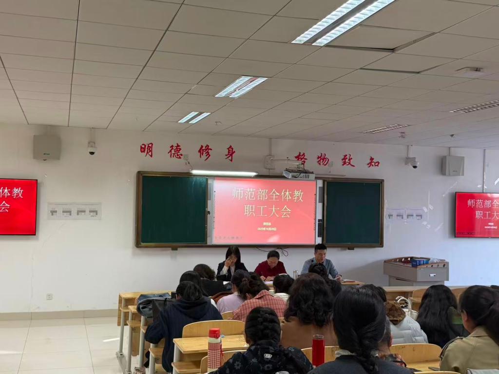 杨丽书记传达了学校第三次安全生产暨秋季防火工作会议精神并部署后续安全工作。她指出,本次安全工作会议是师范部筑牢安全防线、保障教育教学平稳有序的关键举措,全体教师需将文件精神转化为安全工作实效,严格落实会议精神,为师范部人才培养与高质量发展筑牢安全根基。