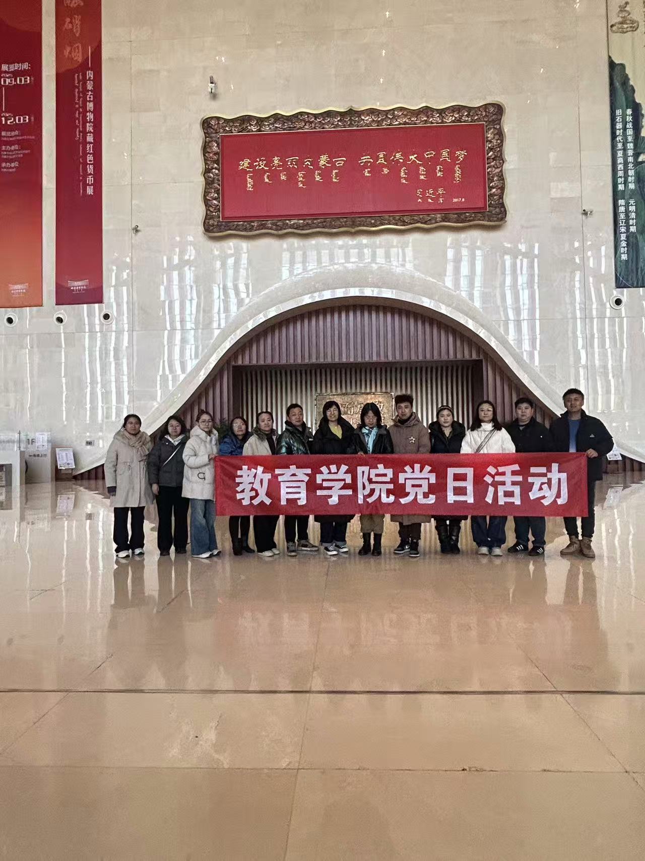 为深化党员理想信念教育,传承红色基因,11 月 30 日,教育学院党总支组织全体党员前往内蒙古博物院开展“观博悟初心,奋进新时代”主题党日参观活动。