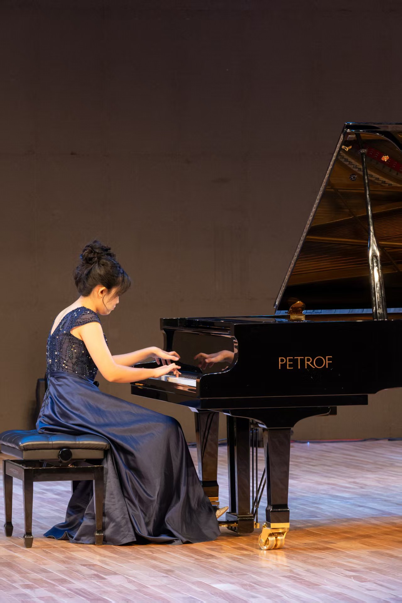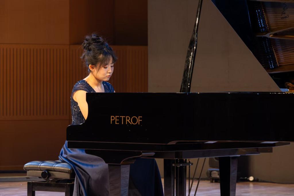 作为潘桐同学专业学习成果的集中展示,音乐会曲目编排兼具技术深度与艺术内涵,巧妙呼应"攀音·同韵"的主题——既体现对钢琴技艺的攀登追求,又彰显合作演奏的和谐共鸣。独奏环节中,她指尖流淌的旋律时而悠扬婉转,时而激昂澎湃,精准的触键控制与细腻的情感表达,展现出对不同风格作品的深刻理解。合作演奏段落里,她与搭档配合默契,旋律的交织与应答如对话般自然流畅,将音乐的层次感与感染力充分传递给在场每一位听众。