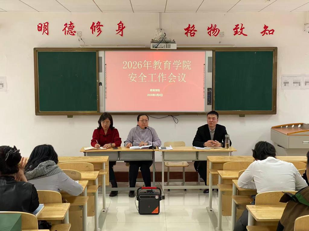 2026年3月4日,教育学院在明学楼 127 会议室召开安全工作专题会议,学院党总支书记杨丽主持会议,全体教职工参会。