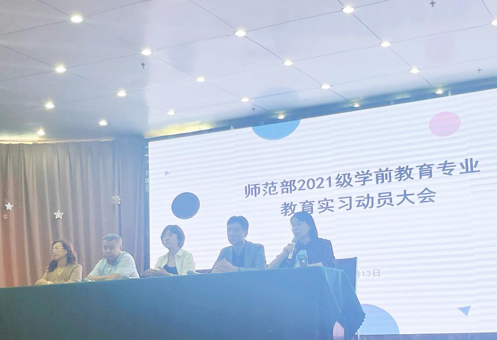9月13日,师范部在学院图书馆一楼报告厅召开了2021级学前教育专业学生教育实习动员大会。师范部副主任卢富强、副主任杨淑英、副主任银杰、学前教研室主任申春生、实习实训中心主任韩红娟以及2021级学前教育专业三年制2、4、6、7班、2019学前教育专业五年制的全体学生和班主任参加了此次会议,银杰副主任主持会议。