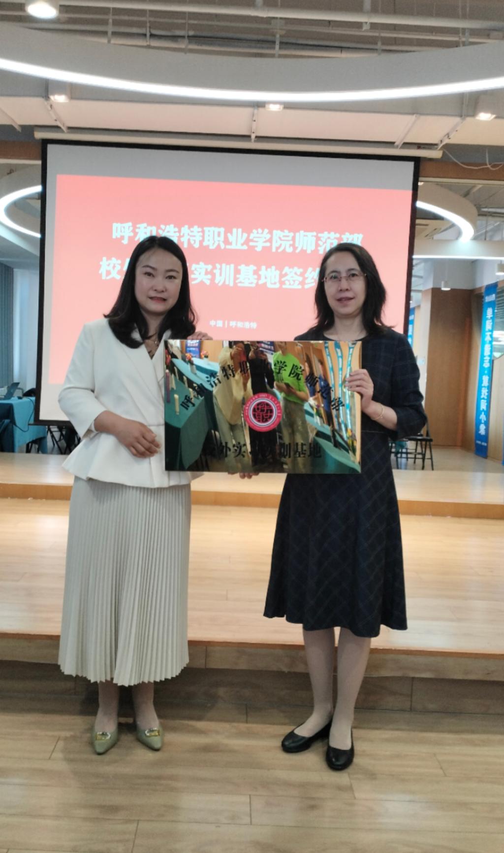 签约仪式上,李江南主任与任静总经理签署校外实习实训基地合作协议,并举行授牌仪式,正式确立"呼和浩特职业学院师范部校外实习实训基地"合作关系。这一举措标志着双方在人才培养领域迈出实质性步伐,为深化产教融合搭建了坚实平台。
