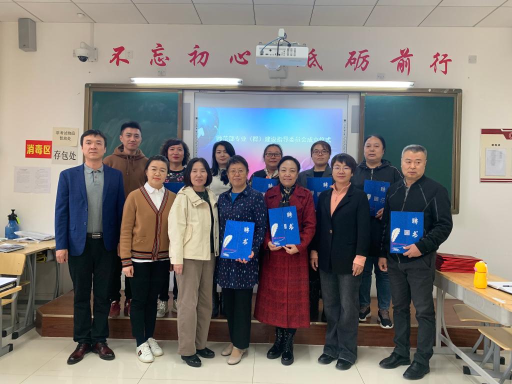 10月6日下午,师范部专业(群)建设指导委员会成立仪式在励学楼109教室举行,成立仪式由师范部副主任卢富强主持。卢富强副主任宣读了专业(群)建设指导委员会成员名单,师范部教务科科长刘杰宣读了师范部专业(群)建设指导委员会章程,会议表决并通过了《师范部专业(群)建设指导委员会章程》,随后,师范部领导班子成员为10名委员颁发聘书。