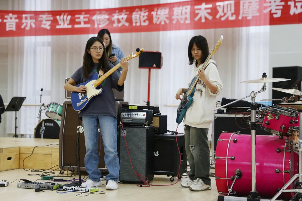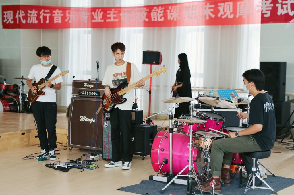 2022年9月16日,呼和浩特职业学院师范部现代流行音乐教研室组织进行了2021—2022学年第二学期主修专业技能课的观摩考试。此次考试由现代流行音乐教研室主任孙建军老师主持,相关任课老师均到场观看并为学生们打分。主修流行演唱、打击乐、电吉他、电贝司、流行键盘、萨克斯等专业的同学都出色地完成了自己的考试曲目,并获得理想的成绩。